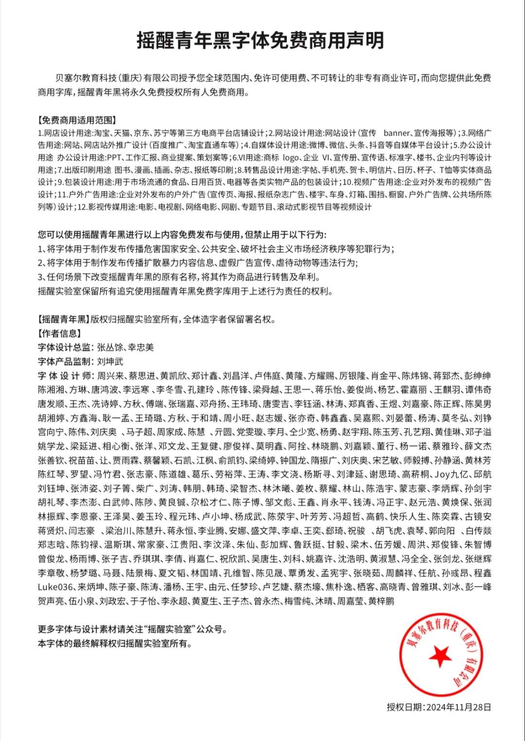 5、极个别字体限制了免费商用的范围,已在字体介绍中做出说明。随着时间推移,字体的授权可能会产生变化,因此凡是能找到官网或者版权说明的我们都放上了链接,在商用尤其是大批量印刷前建议查阅官方授权说明,如发现授权方式变化了请联系我们更新本字体。
