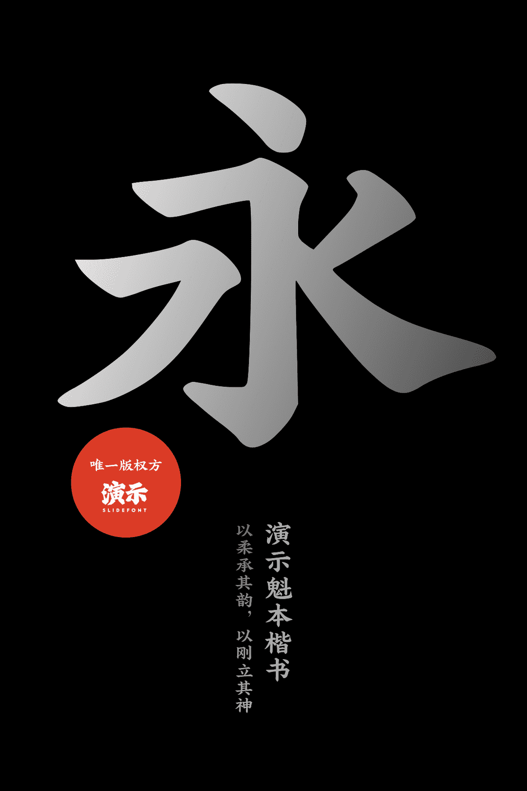 演示魁本楷书是演示字体(keynote研究所)发布的第6款免费商用字体,前面5款分别是:演示秋鸿楷、演示夏行楷、演示春风楷、演示悠然小楷、演示佛系体
